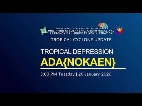 Press Briefing: Tropical Depression ADA {NOKAEN} issued at 05:00 PM | January 20, 2026 - Tuesday DOST-PAGASA Weather Specialist: #weatherreport #dostpagasa #AdaPH For more detailed information please visit these links: Tropical Cyclone Bulletin : https://ift.tt/PAzgl2Y Weather Advisory : https://ift.tt/u3lgO9m Storm Surge Warning: https://ift.tt/ic2uoTa Gale Warning : https://ift.tt/ic2uoTa PAGASA Weather Report (Subscribe for more weather updates) Facebook Page (Like): / pagasa.dost.gov.ph Twitter (Follow): / dost_pagasa Website (Visit): https://ift.tt/OtUV7pA Customer Satisfaction Survey (Feedback): https://shorturl.at/Do3VX