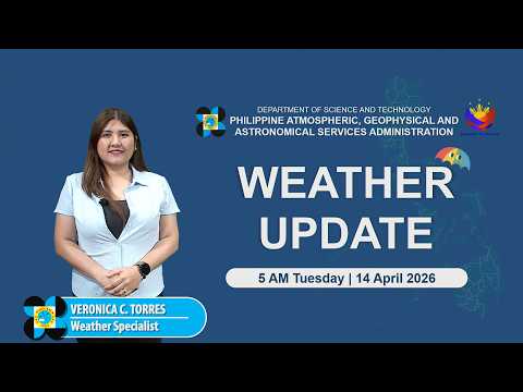 Public Weather Forecast issued at 5:00 PM | April 13, 2026 - Monday DOST-PAGASA Weather Specialist: Benison Estareja #weatherreport #dostpagasa PAGASA Weather Report (Subscribe for more weather updates) Facebook Page (Like): / pagasa.dost.gov.ph Twitter (Follow): / dost_pagasa Website (Visit): https://ift.tt/Fu1PThH